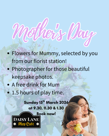 To make the day extra special, we will also have a real flower stand where children can choose a beautiful flower for their mum or special grown-up to take home. This also includes a drink for mum so she can enjoy watching the little ones play and hot coffee for once!